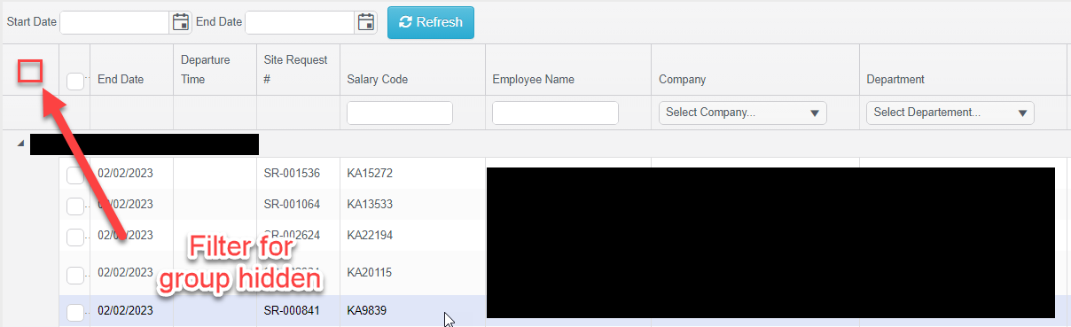I have a Kendo grid Jquery component with field grouped and hidden. I would like to show a filter button based on this field. Could you help me ?