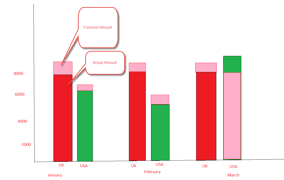 if i can combine Bar chart with bullet charge will achieve my goal. or if Bar chart can show "Target" also will be ok. appreciate your help.