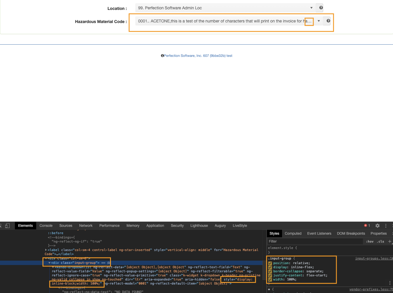 The elements are wrapped in bootstrap 3 'input-group' which sets 'display: table' and when I change that to 'display: inline' it fixes the overflow,,, but then the input-group breaks! (the elements drop to the next line).