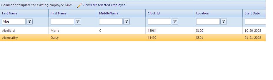 <%-- Beginning Block of Rad Grid --%> <telerik:RadGrid ID="RadGrid1" runat="server"> <%-- Beginning Block of Master Table --%> <MasterTableView DataKeyNames="PersonTableID" Name="Master" Font-Size="11px" DataSourceID="SqlDataSource3" AllowFilteringByColumn="true" CommandItemDisplay="Top"> <RowIndicatorColumn> <HeaderStyle Width="20px"></HeaderStyle> </RowIndicatorColumn> <%-- Beginning Block of Detail Table --%> <DetailTables> <telerik:GridTableView runat="server" DataSourceID="SqlDataSource4" DataKeyNames="JobPersonID" ShowHeader="true" Width="100%" Name="Detail" AllowAutomaticDeletes="true" ClientDataKeyNames = "JobPersonID" <ParentTableRelation> <telerik:GridRelationFields DetailKeyField="PersonId" MasterKeyField="PersonTableID" /> </ParentTableRelation> <Columns> ''' ''' </Columns> <EditFormSettings EditFormType="Template" FormCaptionStyle-CssClass="form-controls"> <FormCaptionStyle CssClass="form-controls"></FormCaptionStyle> <FormTemplate> ''' ''' </FormTemplate> </EditFormSettings> </telerik:GridTableView> </DetailTables> <%-- Ending Block of Detail Table --%> <%-- Beginning Block of Detail Table1 --%> <DetailTables> <telerik:GridTableView runat="server" DataSourceID="SqlDataSource5" DataKeyNames="JobPersonID" ShowHeader="true" Width="100%" Name="Detail1" AllowAutomaticDeletes="true" ClientDataKeyNames = "JobPerson_SecondaryID" <ParentTableRelation> <telerik:GridRelationFields DetailKeyField="PersonId" MasterKeyField="PersonTableID" /> </ParentTableRelation> <Columns> ''' ''' </Columns> <EditFormSettings EditFormType="Template" FormCaptionStyle-CssClass="form-controls"> <FormCaptionStyle CssClass="form-controls"></FormCaptionStyle> <FormTemplate> ''' ''' </FormTemplate> </EditFormSettings> </telerik:GridTableView> </DetailTables> <%-- Ending Block of Detail Table1 --%> <ExpandCollapseColumn Visible="True"> </ExpandCollapseColumn> <Columns> ''' ''' </Columns> <%-- Beginning Block of Master Table Edit Forms --%> <EditFormSettings EditFormType="Template"> <FormTemplate> <table id="Table2" class="form-controls" cellspacing="2" cellpadding="1" width="100%" border="0" rules="none" style="border-collapse: collapse;background:#DCDCDC;"> <tr> <td> Show Hide Detail Forms: </td> <td> <asp:LinkButton ID="LinkButton5" onclick = "HideDetail_ShowDetail1_Click" runat="server">Hide Detail but Show Detail1</asp:LinkButton> <asp:LinkButton ID="LinkButton5" onclick = "HideDetail1_ShowDetail_Click" runat="server">Hide Detail1 but Show Detail</asp:LinkButton> </td> </tr> </table> </FormTemplate> </EditFormSettings> <%-- Ending Block of Master Table Edit Forms --%> </MasterTableView> <%-- Ending Block of Master Table --%> <ClientSettings> <Selecting AllowRowSelect="True" /> </ClientSettings> </telerik:RadGrid> <%-- Ending Block of Rad Grid --%> ___________ protected void HideDetail_ShowDetail1_Click(object sender, System.EventArgs e) { RadGrid1.MasterTableView.DetailTables[0].Visible = false; RadGrid1.MasterTableView.DetailTables[1].Visible = true; } protected void HideDetail1_ShowDetail_Click(object sender, System.EventArgs e) { RadGrid1.MasterTableView.DetailTables[1].Visible = false; RadGrid1.MasterTableView.DetailTables[0].Visible = true; }