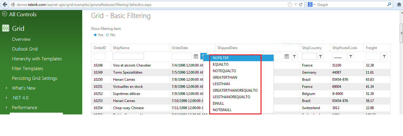 GridDateTimeColumn, if not then available filter items in that column will be No Filter & Equal To.Attached is my screen shot. Any help will be appreciated.