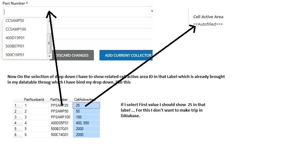 Now I have show 70 in a separate label if I select Student3 to do this as it is only single value I don't want to make any round trip to server. Please help.