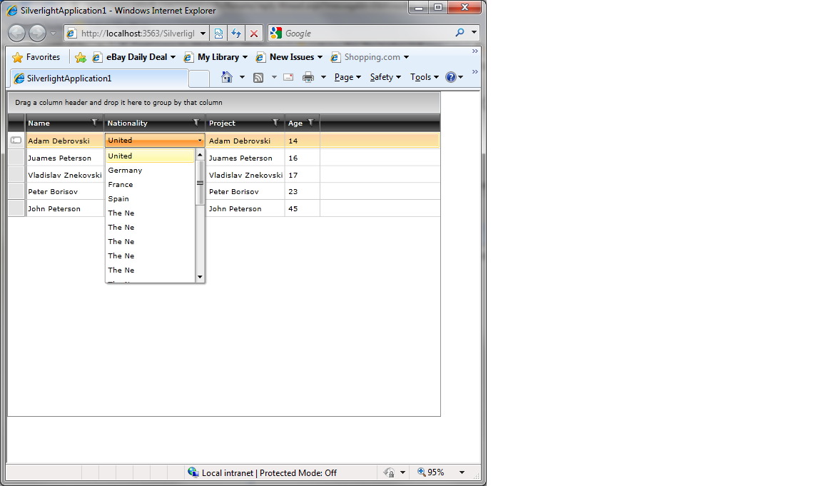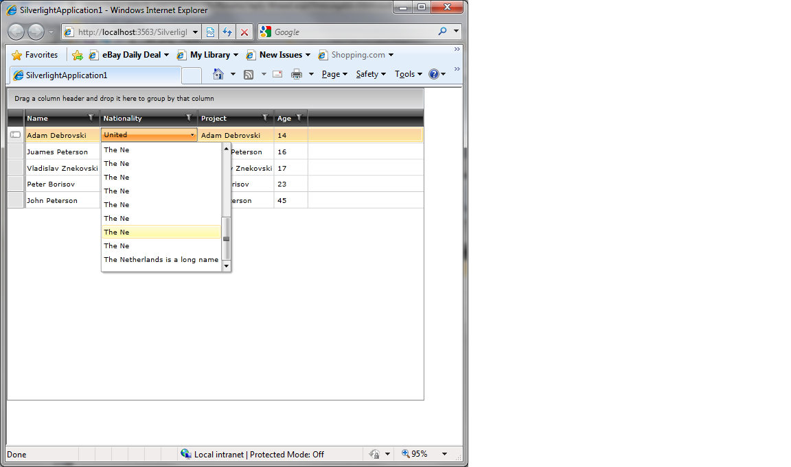SelectedValueMemberPath="ID" SortMemberPath="Name" >Here the deviation of 4 pixel is necessary as the EditTemplate is slightly different than the ComboBox shown. In case you want a Horizontal Scroll Bar, you may set the property of the ScrollViewer: