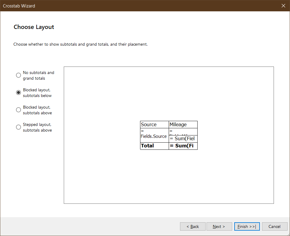 Step 3: Select the Subtotal/Total Layout