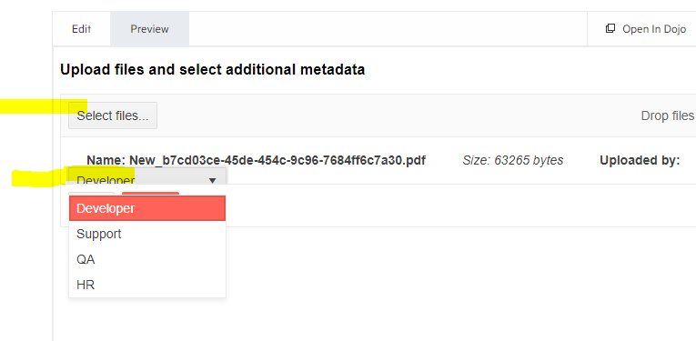 how to upload files and select additional metadata by using the Kendo angular UI Upload control. I saw this is available in kendo UI for Jquery but we need in kendo UI for Angular. Below is the Jquery example. We need same control in Kendo angular UI .Is it available?