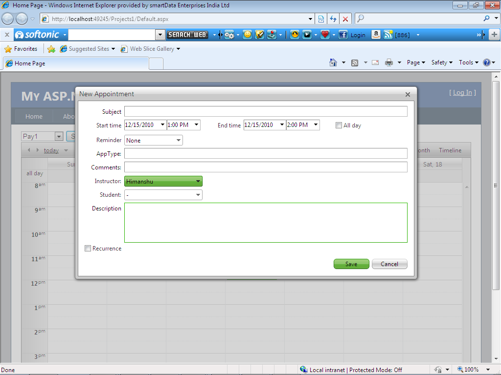I am a beginner. I want to use rad Scheduler in our project. Appointments Table in sql server databse will contain following fields