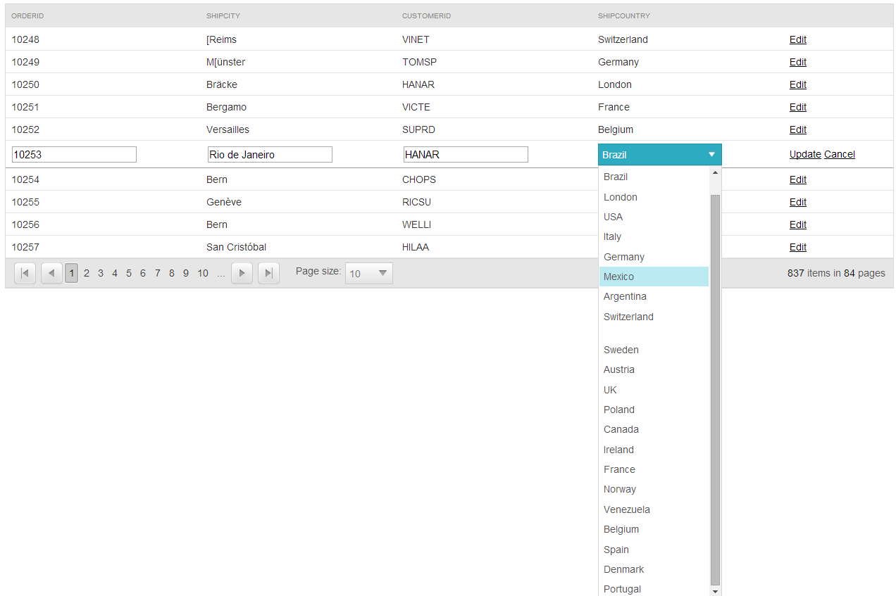 In addition, how can I bind data to the rad combobox from server side? (like itemdatabound)? Is there any way to call server side function on update command?