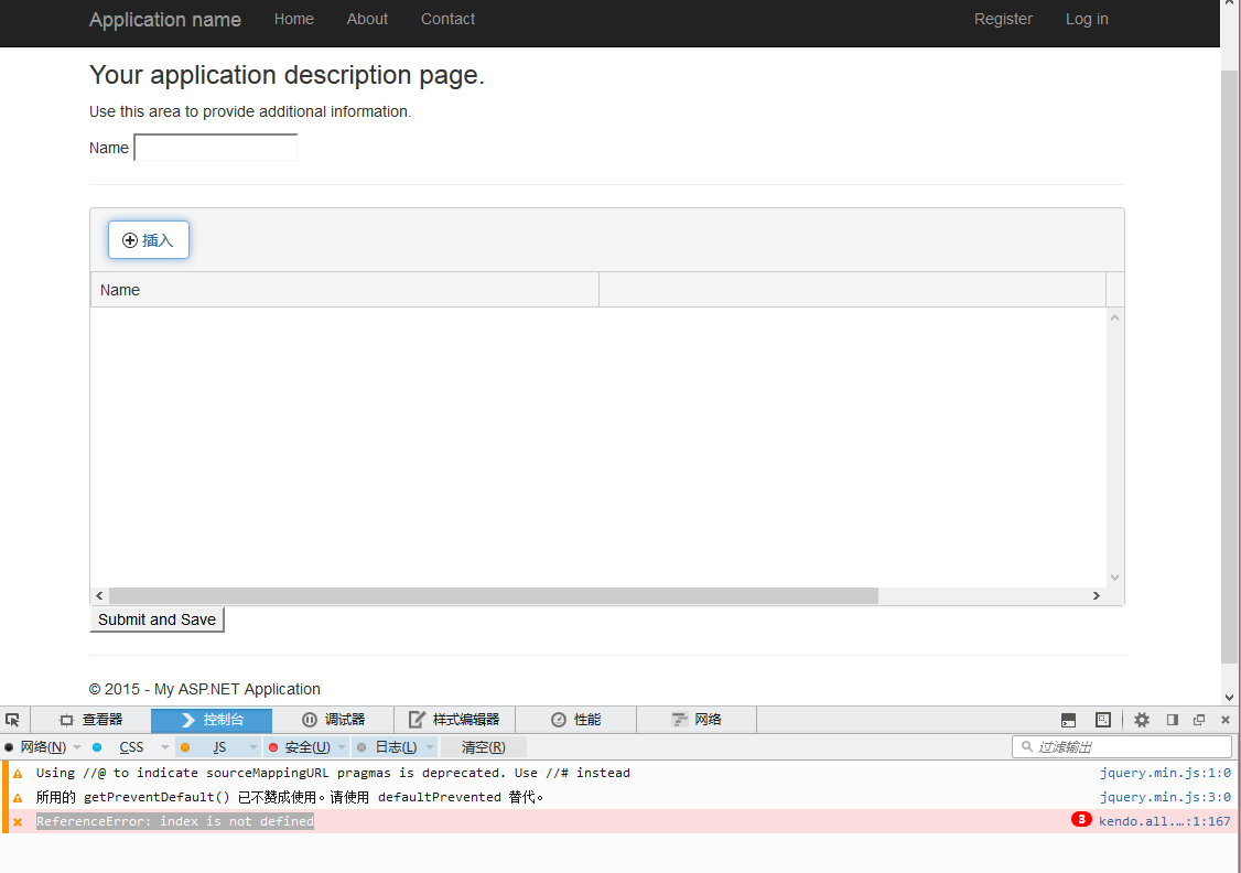 I tried Submit form containing grid along with other input elements code, but when I clicked "Add" button, the Firefox browser warned me that "ReferenceError: index is not defined", the same as Opera with Webkit engine.