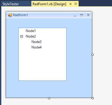 1. Used Visual Style Builder to create a simple style. To test, just a new background color for RadTreeView.