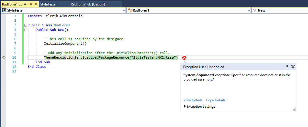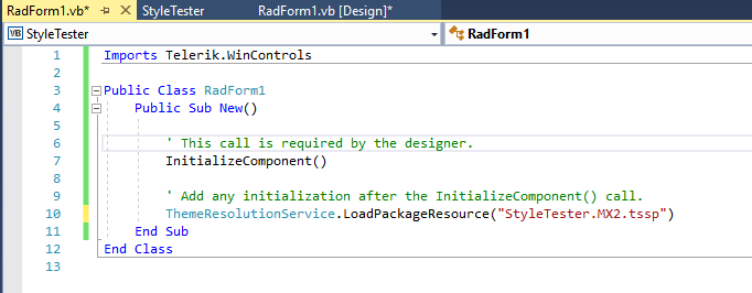 4. added the command to load the package resource..ThemeResolutionService.LoadPackageResource("StyleTester.MX2.tssp")