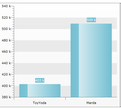 I am using drilldownchart(RadChart Hierarichal Chart). I would like to use different colors for bars. I am getting same gradient color for all bars. Please find the current working chart screenshot and expected.