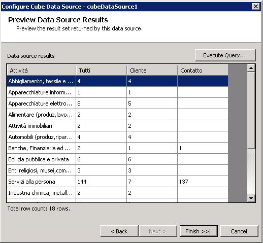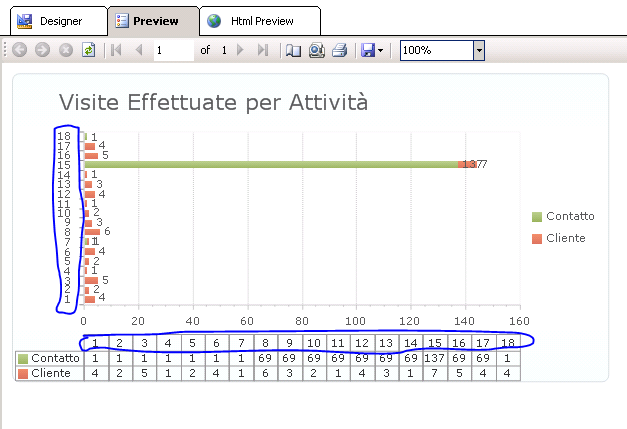 Now on telerik report I put a char, set a CubeDataSource and specify 2 Series that link to Customer and Contact. Ok!