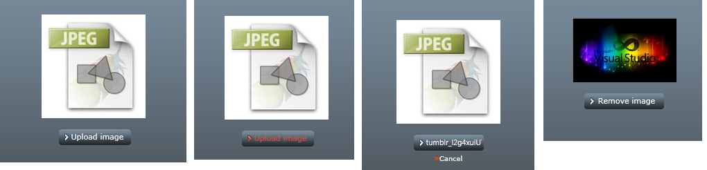 .createContentPageAdditionalOptions .RadUpload { width:100px !important; } .RadUpload input { font-family: verdana !important; } .createContentPageAdditionalOptions .RadUpload input.ruFakeInput { display: none; } .RadUpload input.ruBrowse { background: url(/Images/btnLeftPartInactive.png) top left no-repeat !important; width: auto !important; line-height:21px; height:23px; text-align:left; margin:0px 3px 0px 0px !important; padding:0px 8px 3px 18px !important; } .createContentPageAdditionalOptions .RadUpload .ruInputs { text-align:center; } .RadUpload input.ruBrowse, .createContentPageAdditionalOptions .RadUpload .ruUploadProgress, .createContentPageAdditionalOptions .RadUpload .ruCancel, .createContentPageAdditionalOptions .RadUpload .ruRemove { color:#fff !important; } .createContentPageAdditionalOptions .RadUpload .ruUploadProgress { background: url(/Images/btnLeftPartInactive.png) top left no-repeat !important; margin:0px 3px 0px 0px !important; height:23px; overflow:hidden; width:80px; } .RadUpload input.ruButtonHover { background: url(/Images/btnLeftPartActive.png) top left no-repeat !important; color: #d14b35 !important; } .RadUpload .ruFileWrap { width: auto !important; padding: 0px !important; background: url(/Images/btnRightPart.png) top right no-repeat !important; } .RadUpload input.ruBrowse, .createContentPageAdditionalOptions .RadUpload .ruCancel, .createContentPageAdditionalOptions .RadUpload .ruRemove, .RadUpload input.ruFileInput { cursor: pointer !important; }Note createContentPageAdditionalOptions class, I use it here cause I don't want to change the view of all asyncuploads I have, just particular one, next step, on the page where you have the control add following snippet:
