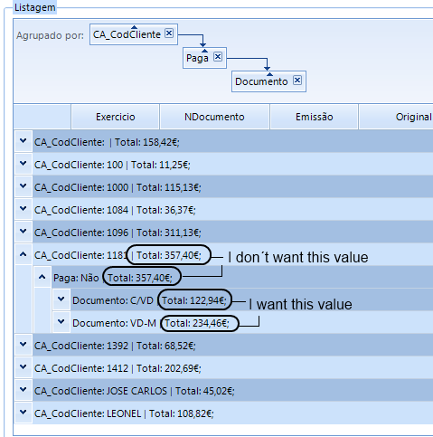 I don´t want to display the total B only Total C and Total D and Total A must be (Total C + Total D).