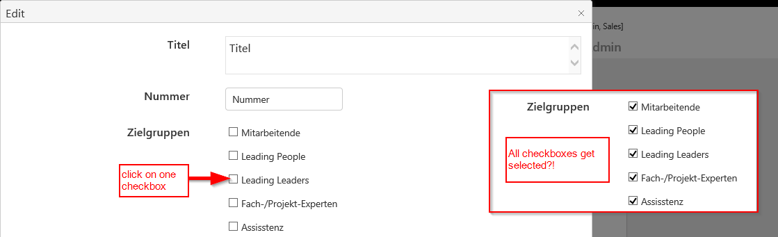 While editing the existing records it is working just fine. But while creating all checkboxes gets selected when I select any checkbox.