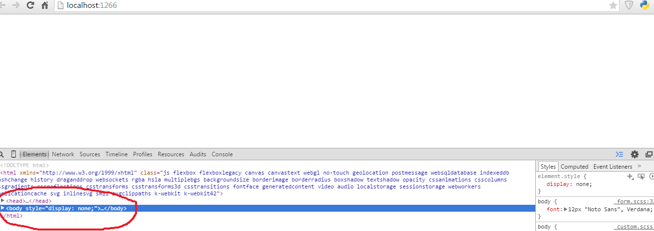 The code above is causing the screen to becomes blank when user clicks anywhere on the screen after typing one character (autosuggest data is being fetchedfor first time). I checked in console, and saw <body> having style "display:none".