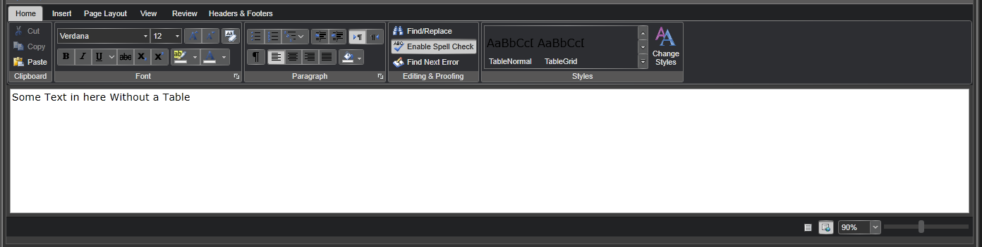 The issue is that when we insert a table, the content in the RichTextBox completly dissappears. Please see the attached screenshots of a before and after (adding a table). Notice the horizontal scrollbar down the bottom.