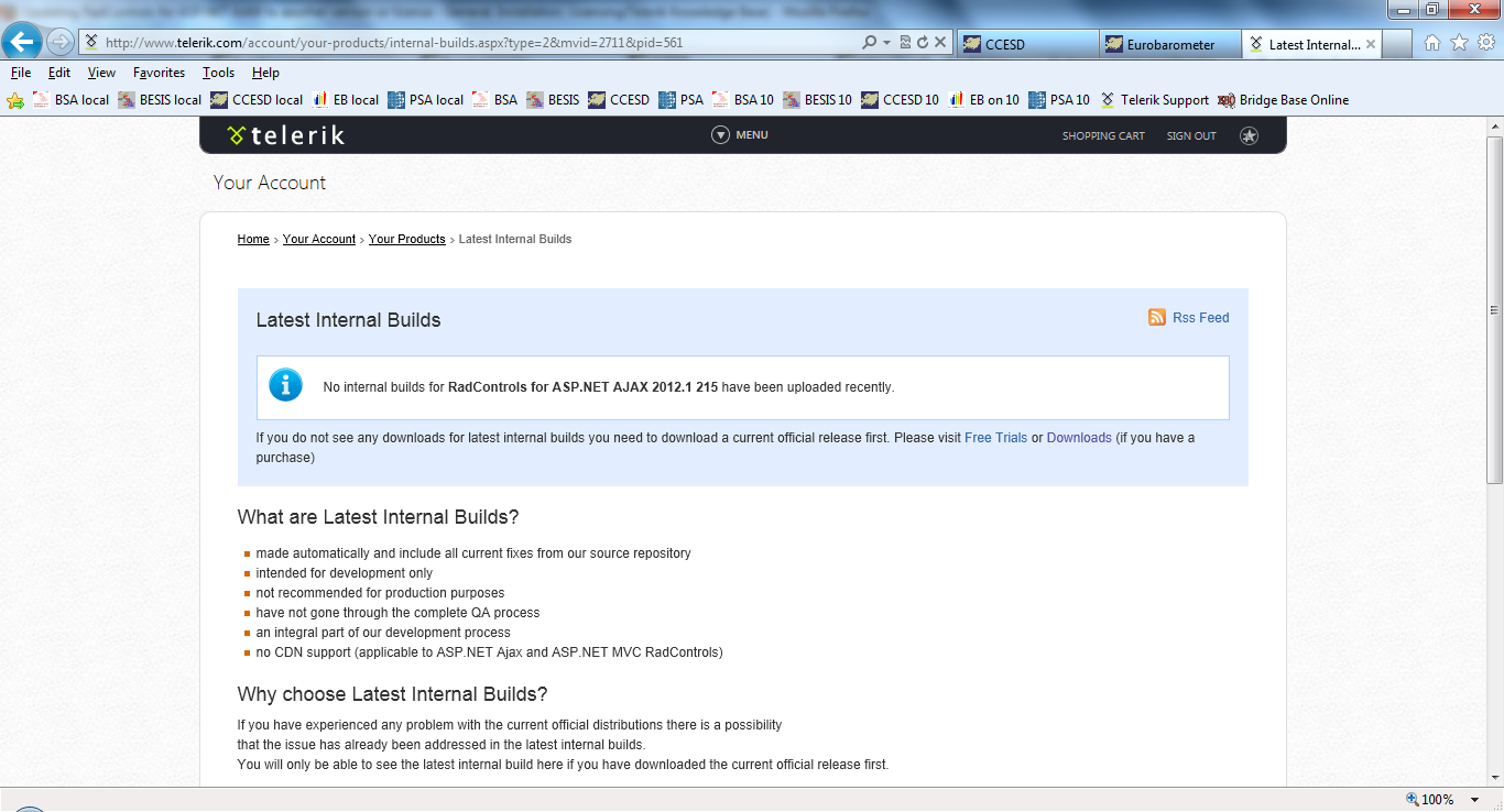 Thank you for your speedy reply. I have looked in our account but cannot see any available internal builds -- please see the attached screenshot for information.
