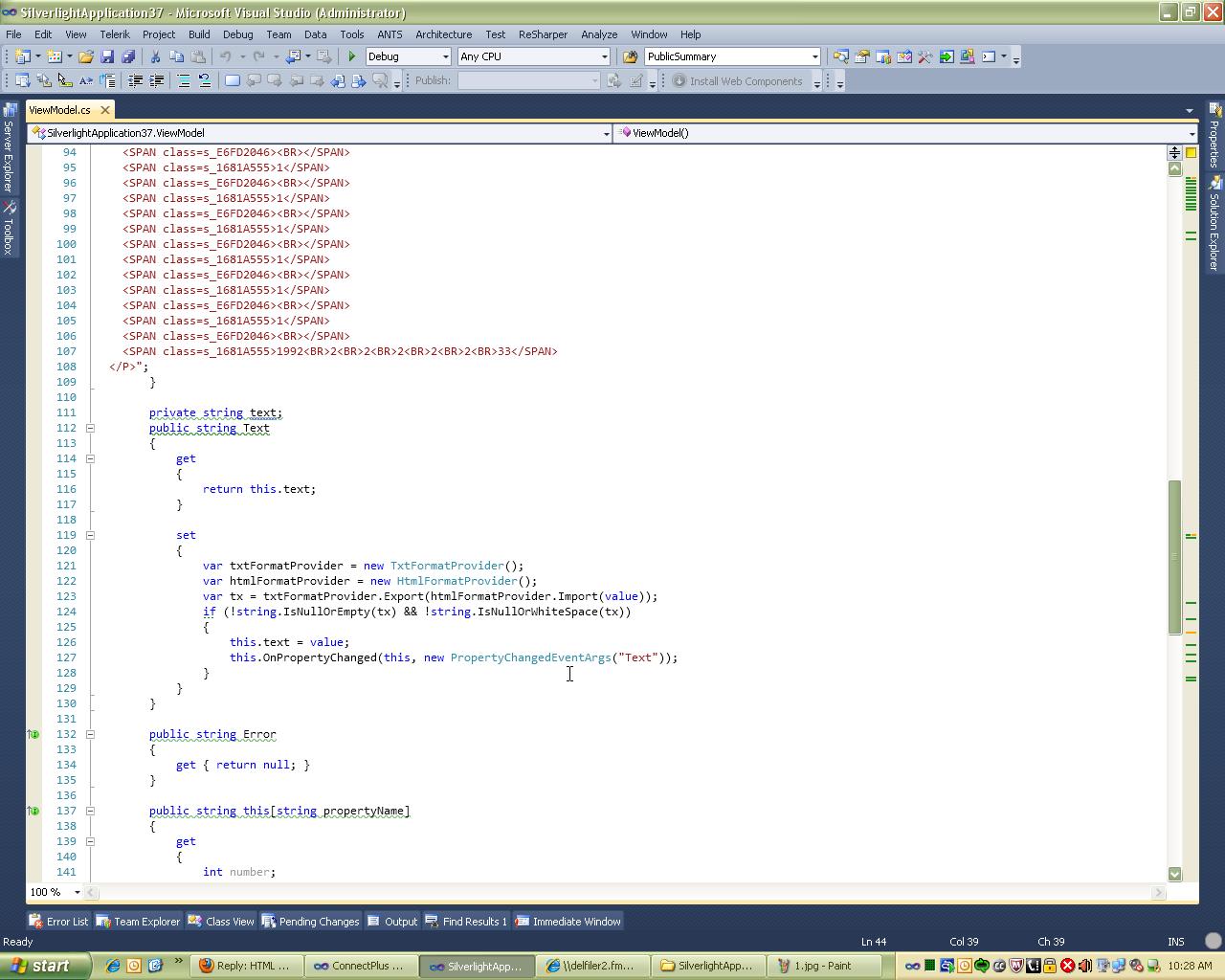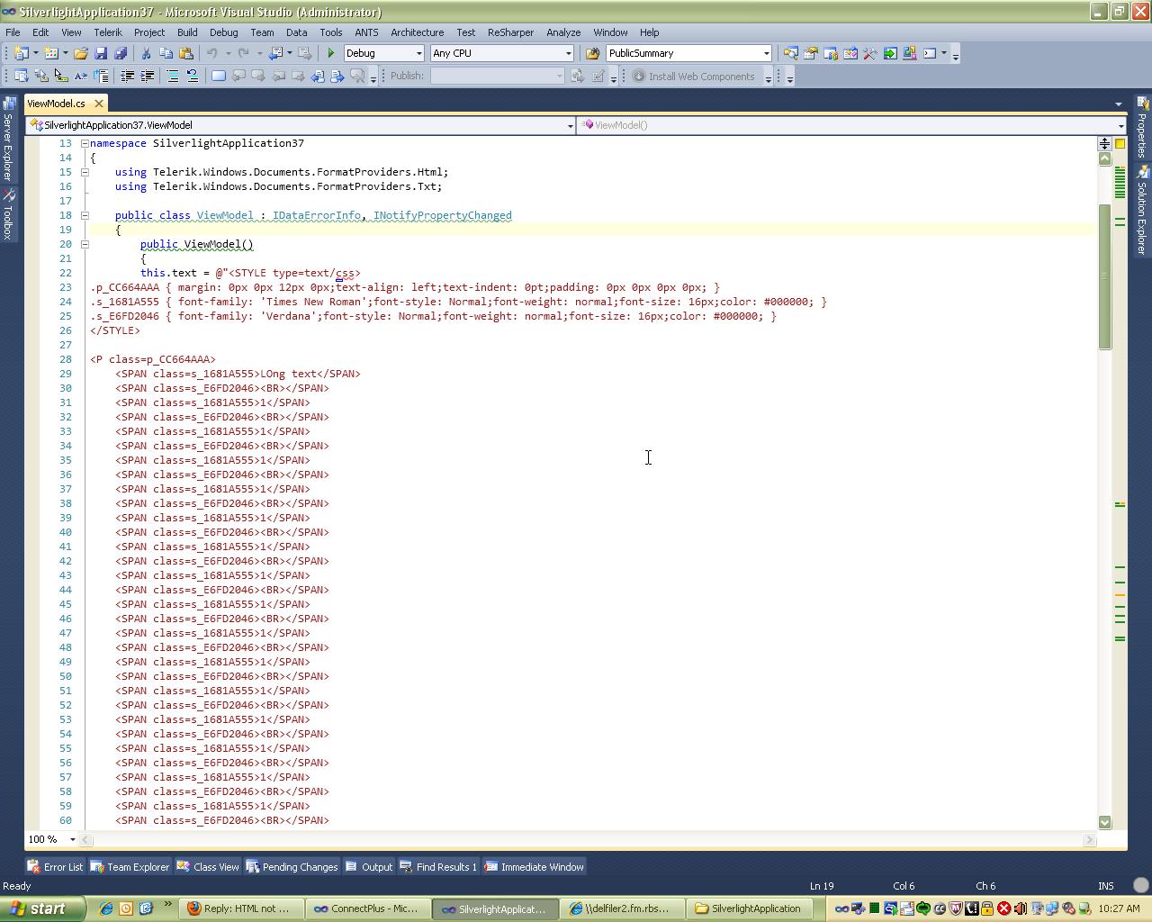 (Attached screen shopt of HTML and property which is binded to richtextbox also in the project i have stripped down all "\n" to have vanila HTML)