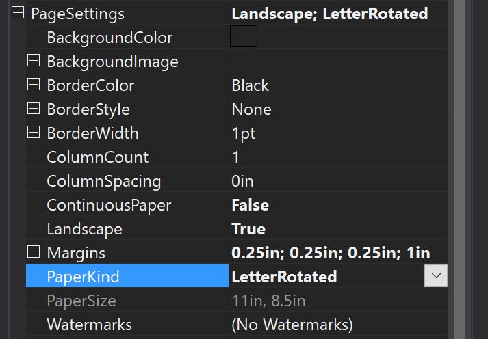 I have a class library where all my reports are. One of my reports needs to be displayed and exported to PDF in landscape mode instead of portrait. In my web application which is a MVC Core application using a target framework of 4.6.1 displays the report fine in the report viewer.