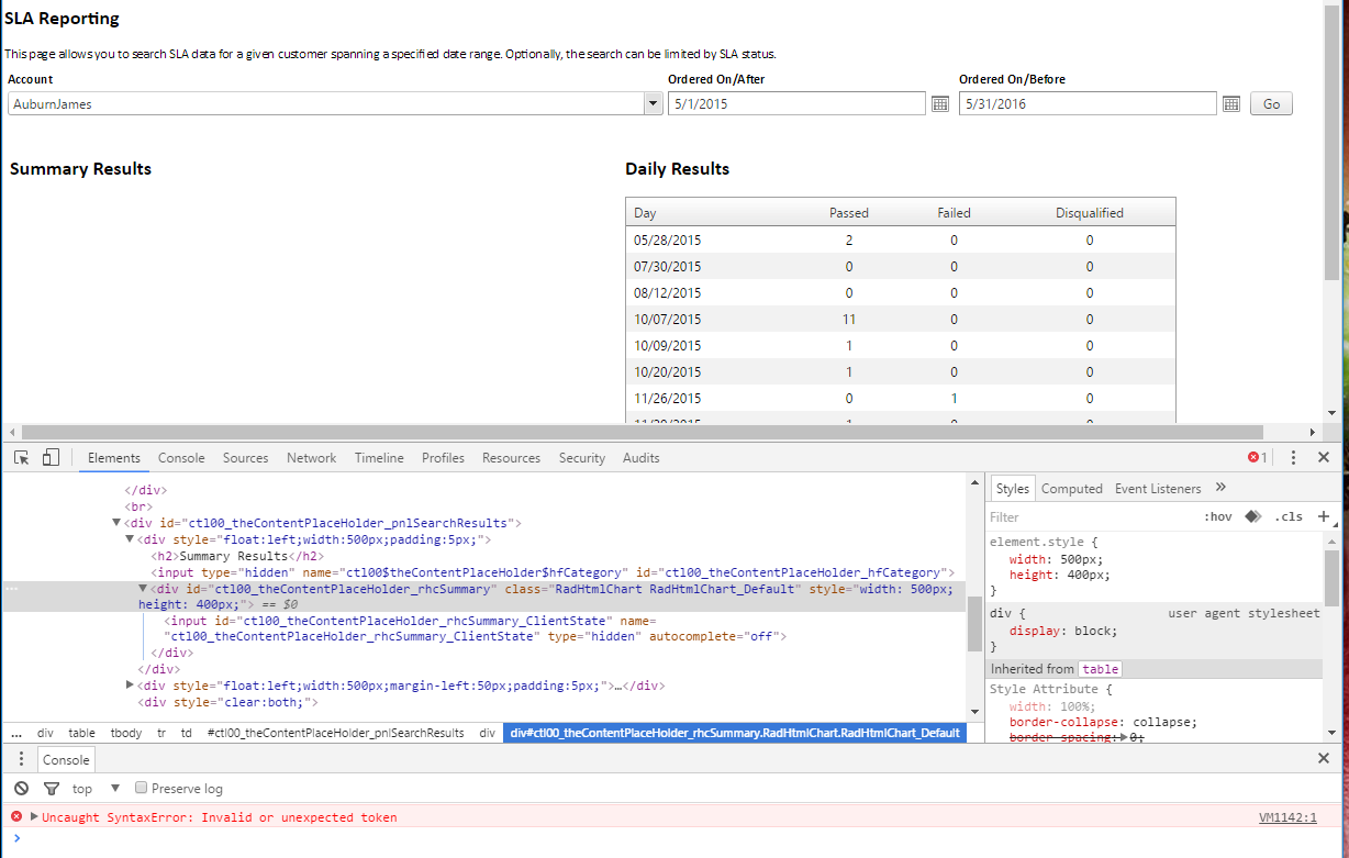 Telerik.Web.UI.WebResource.axd (31026,16)" on MS Edge browser, and on Chrome, I saw "VM343:1 Uncaught SyntaxError: Invalid or unexpected token".