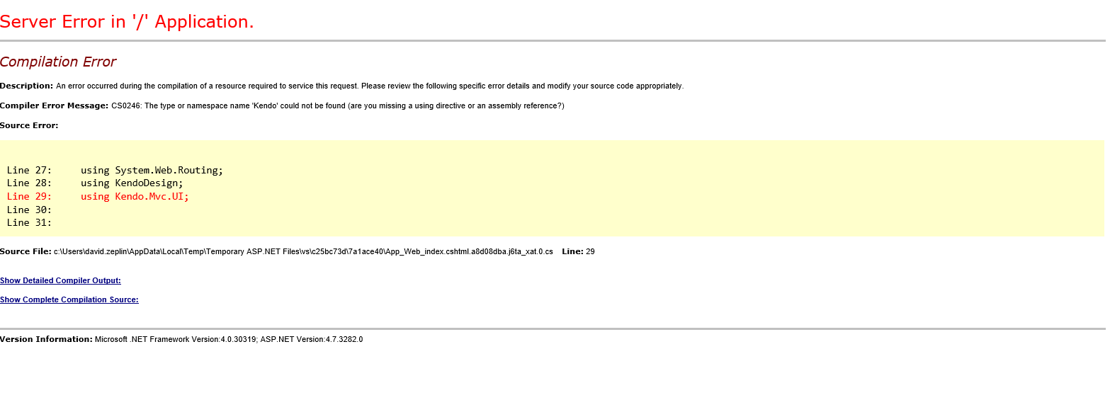 HtmlHelper <dynamic> doesn't contain a definition for Kendo and no accessible extension method for 'Kendo' accepting a first argument of type HtmlHelper