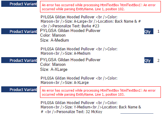 An error has occurred while processing HtmlTextBox 'htmlTextBox1': An error occurred while parsing EntityName. Line 1, position 102.