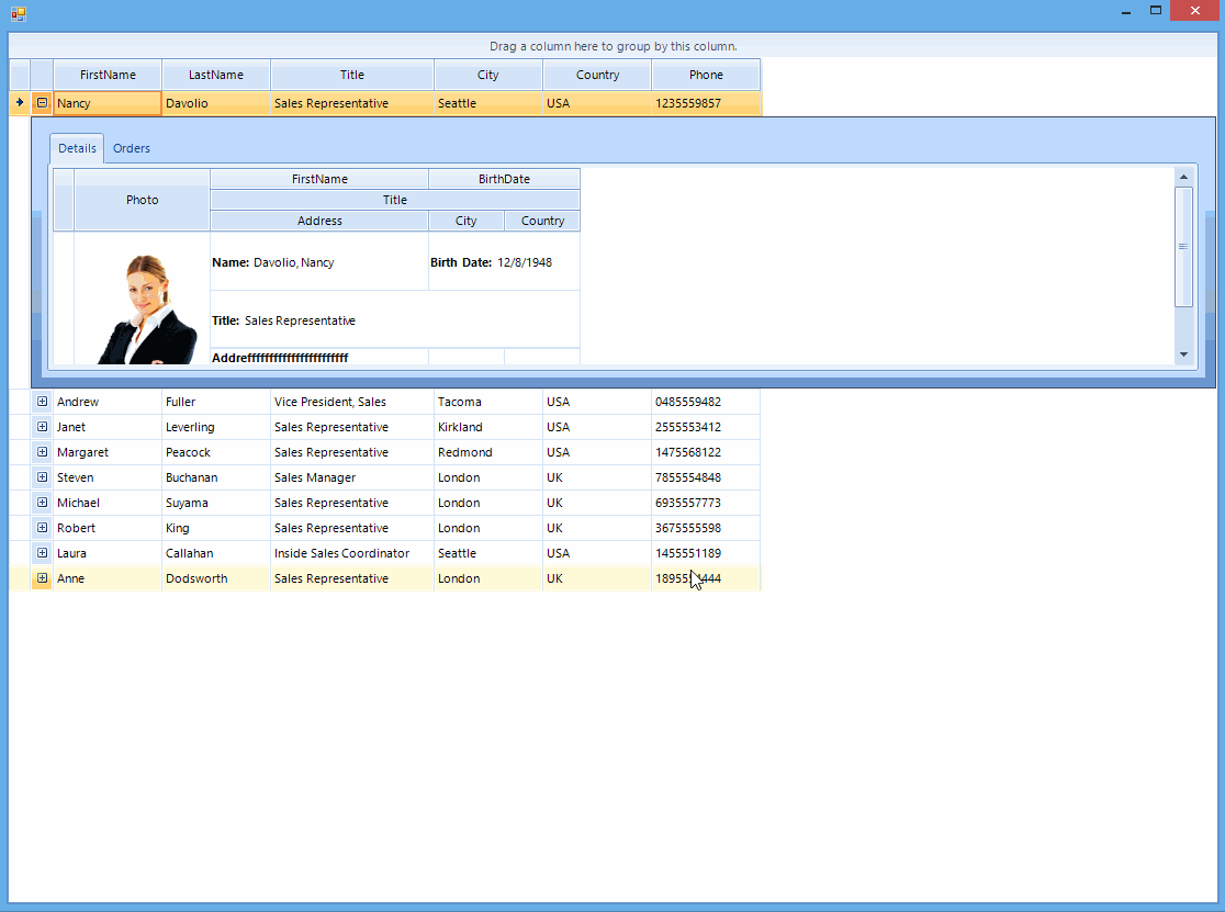 I have a HtmlViewDefinition that is added to a grid so as to provide detail information for a row, similar to your example in http://www.telerik.com/help/winforms/gridview-overview.html except I only have a single row defined in the HtmlViewDefinition