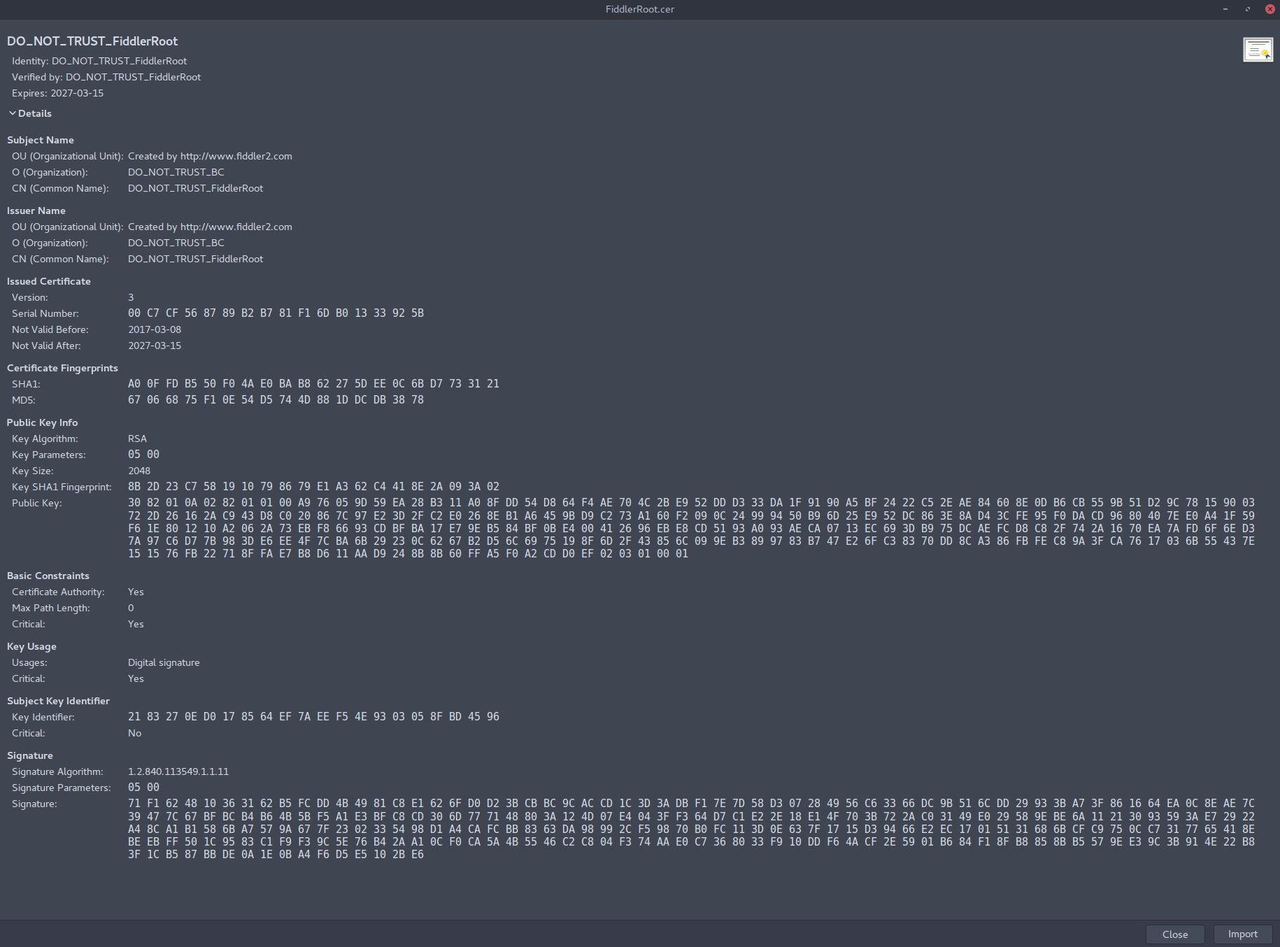 I did import the generated certificate from fiddler to my cert store on Unbutu(16.04) and I imported it on Chrome as well..