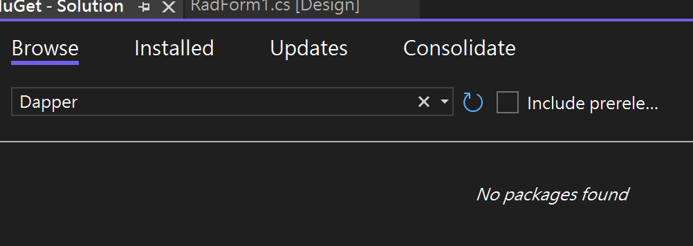 Dapper is not part of the Telerik suites. However, you can check the Package source and make sure you refer to the correct source: