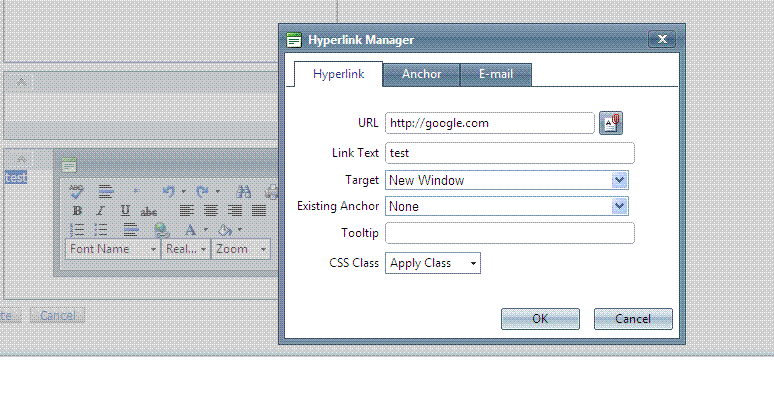 If I again Click on HyperLink Manager, I can see blank values in the HyperLink manager and HyperLink is not created.