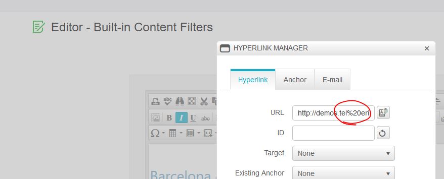On the Telerik site, hyperlinks are not encoded when saving the link in Linkmanager, see screenshot #1.