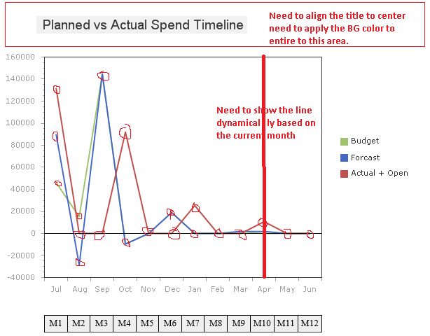 2) I need to draw the line at current month, to differentiate the past and future months.