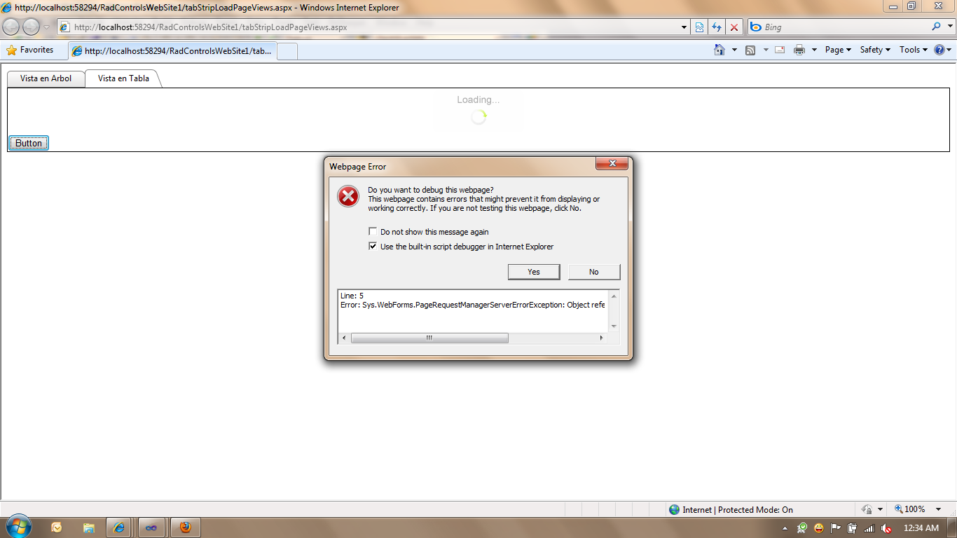 I am running lot of issues with Tabs with latest trial version in VS2010. While researching for solution i came across this forum. When i downloaded your files and added to new RAD Website template in VS2010 it throws an exception on button click.