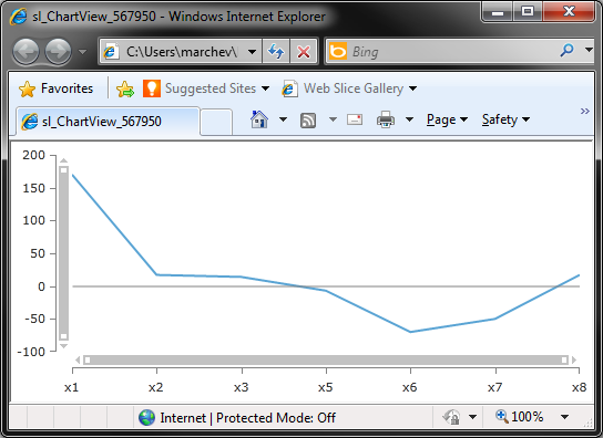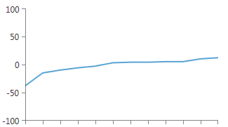 <telerik:RadCartesianChart> <telerik:LineSeries ItemsSource="{Binding MyItems}" ValueBinding="Value" CategoryBinding="Date" /> <telerik:RadCartesianChart.HorizontalAxis> <telerik:CategoricalAxis ShowLabels="false" /> </telerik:RadCartesianChart.HorizontalAxis> <telerik:RadCartesianChart.VerticalAxis> <telerik:LinearAxis Minimum="-100" Maximum="100"/> </telerik:RadCartesianChart.VerticalAxis></telerik:RadCartesianChart>I have attached the resulting chart as an image.