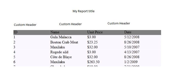 Hi, I need to export radgrid to pdf format, but a need to put to raddocument my custom title and other header with specific information. Fro example