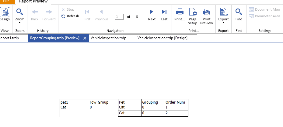 I tried making a group header for Pet, with a child of Grouping and then putting a page break at the bottom of the Grouping group but that didn’t work. I always get the result at the bottom here.