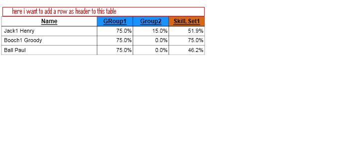 but it does not work for me. please suggest how to add static row for table which i have attached in the image .marked with the red color text there i want to add a static row.