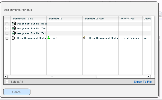 Now this treeview has a user "n,k" which on click opens up menu list with two options "n,k" and "View Assignments" as