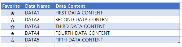 Currently, I am creating a function that registers a favorite for each row of data, and I need to create it as shown in the picture.
