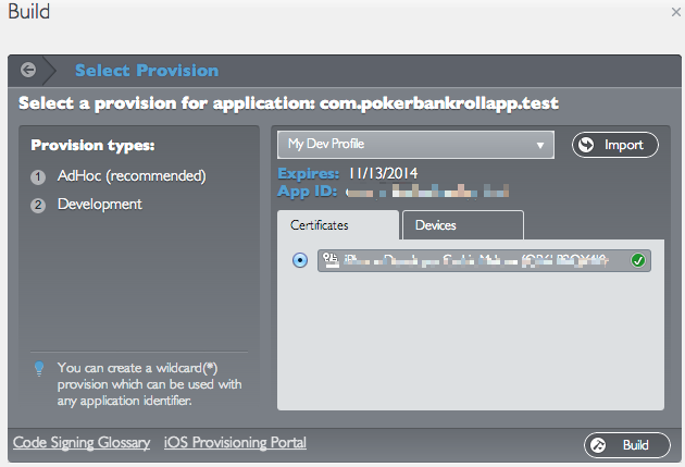 I am trying to build with Provision for iOS. I have the correct Provision, certificate and Device but when building I receive this error message:
