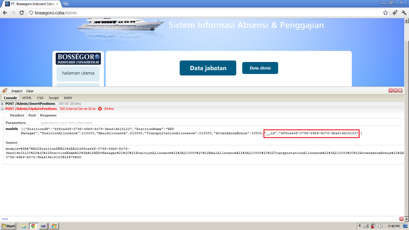 The error always happen when i add new record, save it, update it and save it again.. I don't know why it is happen..