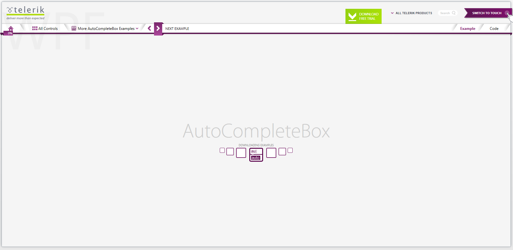 Anyway in case you need runnable projects, I suggest you to take a look at our SDK Repository. There you will find examples of the base functionality of RadAutoCompleteBox and also some custom scenarios (for example NoMatchingFilteringBehavior).