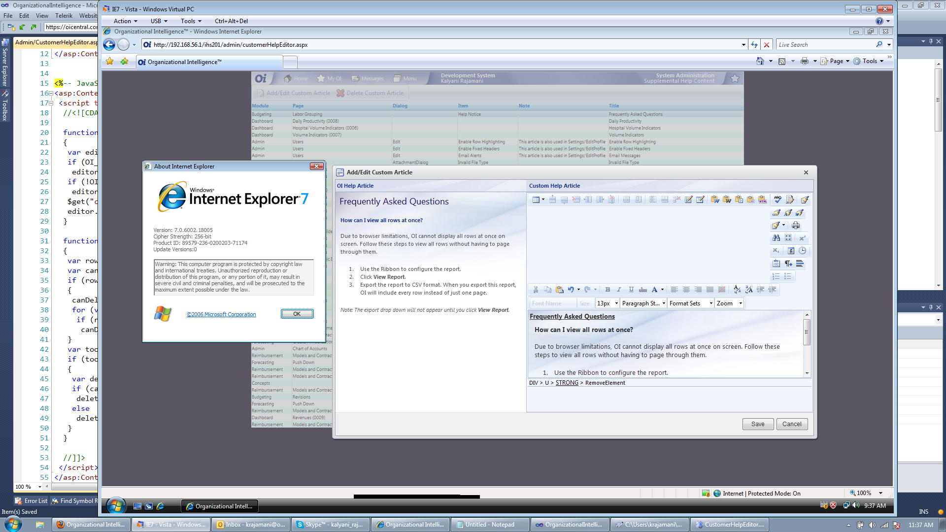 I have a rad editor inside a rad dialog. In IE7 , when the dialog loads for the first time the toolbar is not showing properly. This only happens in IE7 and that too only when I load it for the first time. The second time around everything works great. I am attaching the screen shot of the page.