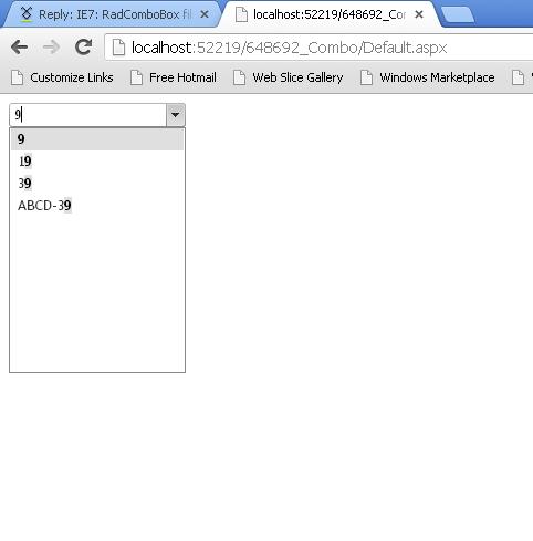When I type number 9 in the above ComboBox, filter is not working.I tried with Chrome, its working fine.