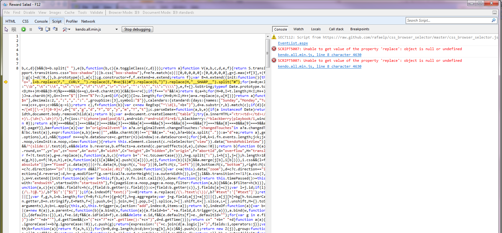 SCRIPT5007: Unable to get value of the property 'replace': object is null or undefined