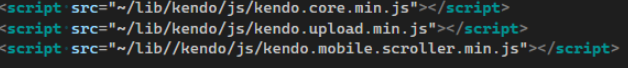 However, after that the kendo.core.min.js, kendo.upload and kendo.mobile.scroller scripts are included. These scripts are already a part of kendo.all.min.js so there's no need to include them a second time.