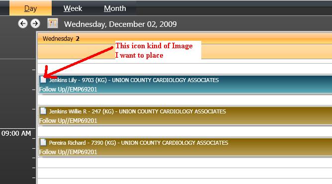 2. I want to place image in appointment. Sample snapshot I am posting which I implemented in Telerik's WPF scheduler. Can I have similar kind of facility of placing image in appointment, Or any way by which I can create template for appointment..??