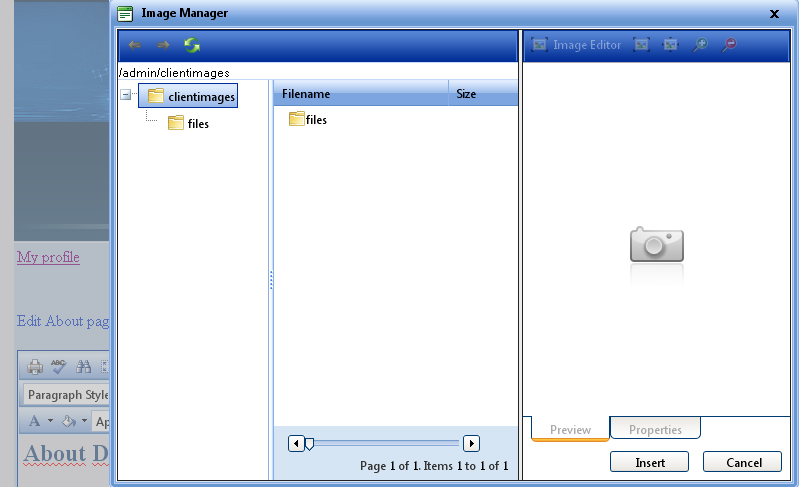 I have problem with inserting images from a folder in RadEditor, the application is hosted on 1and1.com and when it is standart folder it works fine when I click on image button to open image selection dialog.