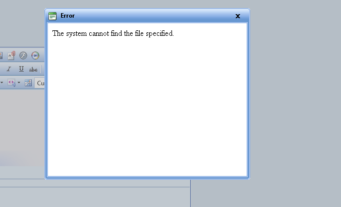 I interest expecialy from "The system cannot find the file specified" . I dont thing before it been other error message. For some reason some time the image browse dialog not shown, but error message appeares. (as shown in the previously uploaded from me screenshot)